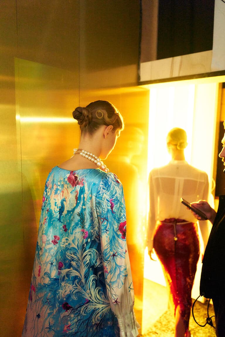 Diese Kreation von ALEXANDER DINTER und STEFFEN ZOLL war der Eyecatcher des Abends: Die bezaubernde Wasserwelle in Kombination mit dem sogenannten « braided bun » – dem geflochtenen Dutt im Nacken. Dazu ein frisches Pink auf den Lippen, zartes Augen Make-up in Rosé und ein makelloser Teint. Voilà!