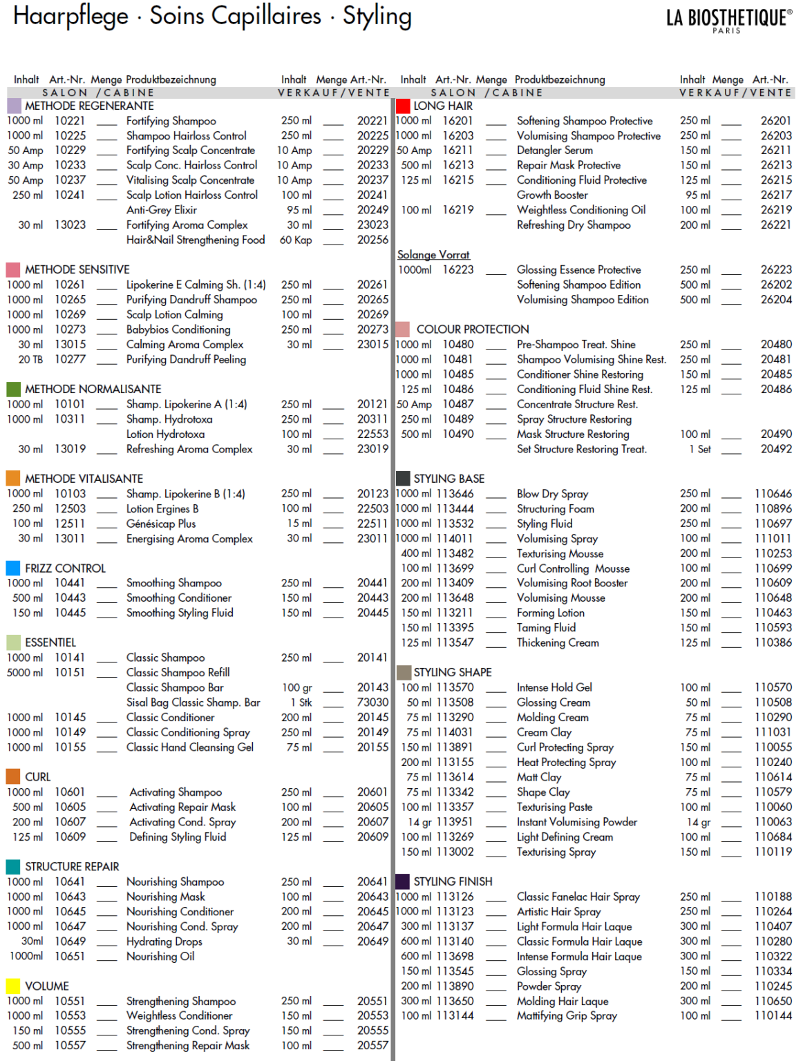 Verbesserte Übersichtlichkeit: Wir haben die Seiten nach den Produktgruppen Haarpflege (inkl. Kopfhautpflege, sowie Styling), Farbe, Hautpflege und Make-up, sowie den entsprechenden Serien strukturiert. Somit sind alle Bereiche nun auf einen Blick sichtbar.