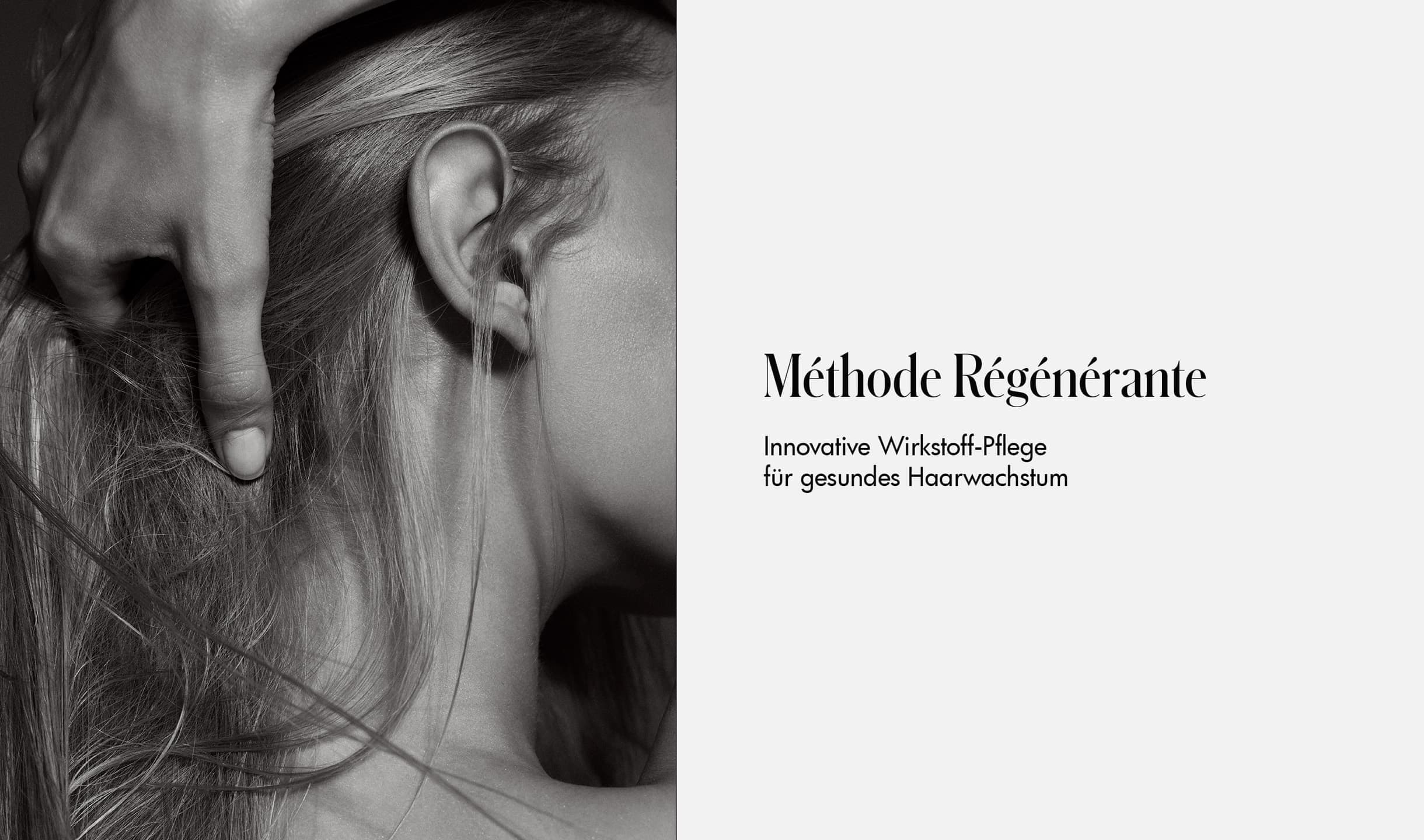 • Wir vereinen unsere Produkte für Haarwachstum und Kopfhaut-Regeneration aus den Linien « Méthode Régénérante » und « Dermosthétique Anti-Age Cheveux » unter dem bekannten Namen « Méthode Régénérante ».