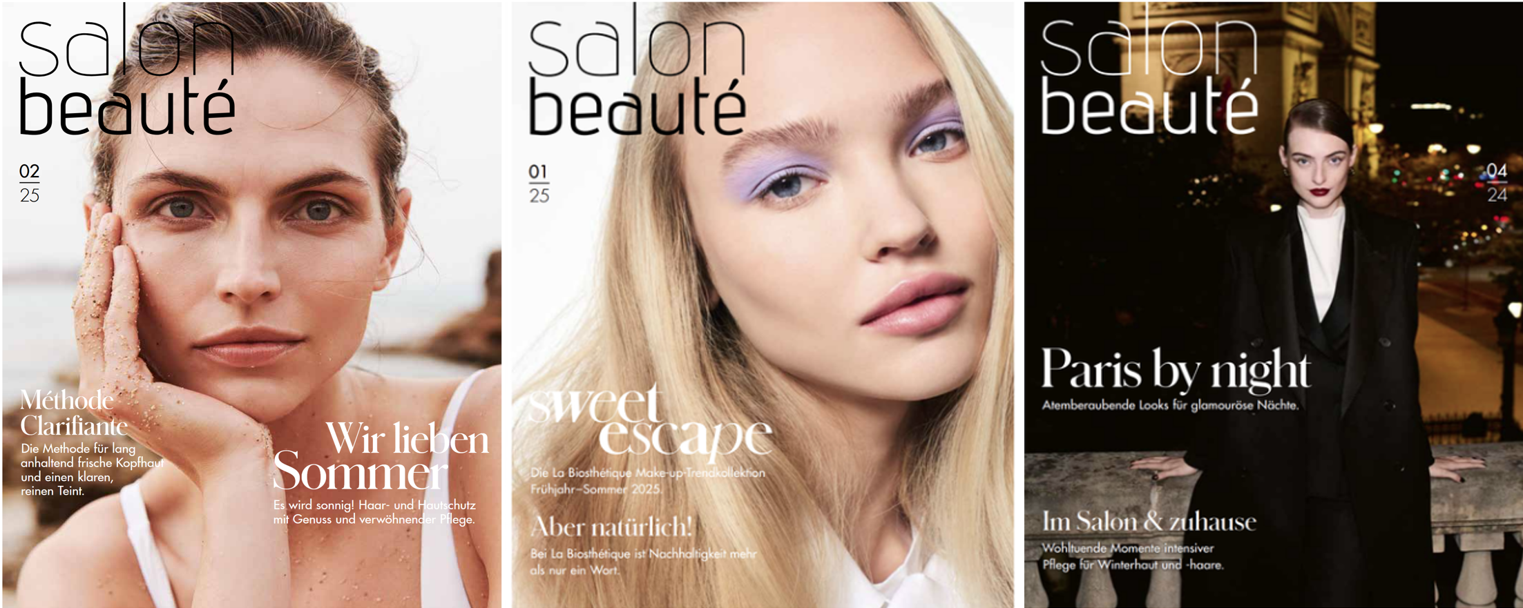 Wir möchten euch dabei unterstützen, jeden Besuch in eurem Salon zu einem einzigartigen Erlebnis für jeden Gast zu machen. Dazu gehört die Salon Beauté — euer exklusives Kundenmagazin voller Fashion- und Beauty Highlights, Produktempfehlungen und hautnahen Geschichten, die Vertrauen in die Marke und euren Salon wecken.